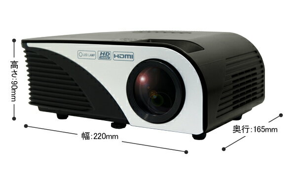 ■在庫のある出荷日について 商品名 LEDコンパクトプロジェクター 型番 YKN-PR012 サイズ(約) 220×90×L165mm 重量:1050g 投影サイズ 30〜120インチ距離:1.25〜4.0m 明るさ ANSI 70ルーメン LED 50W 50000時間 コントラスト 1500:1 ズーム・フォーカス 手動 画素数 800×480 サポート:1980×1280 インターフェイス HDMI/VGA/AV/AUDIO/2.0USB 対応ファイル 写真:JPG 音楽:MP3 映像:.avi/.mpg (対応コーデック 映像:mpeg1/mpeg2/xvid 音楽:mp3) 電源 AC100V 50/60Hz 生産国 中国 主な特徴 ■迫力の120インチ投影 投影サイズは30〜120インチまで。
